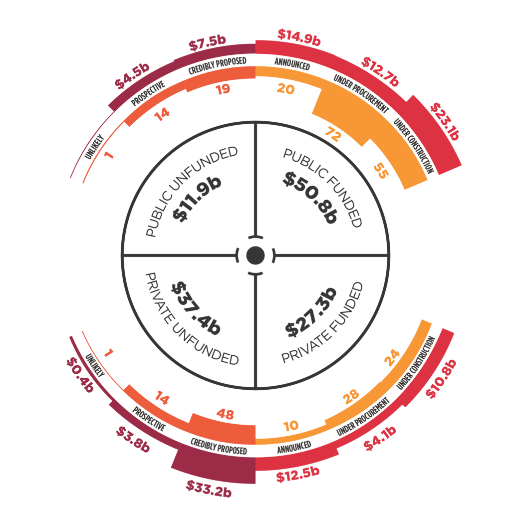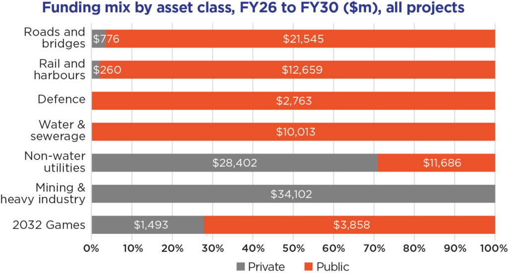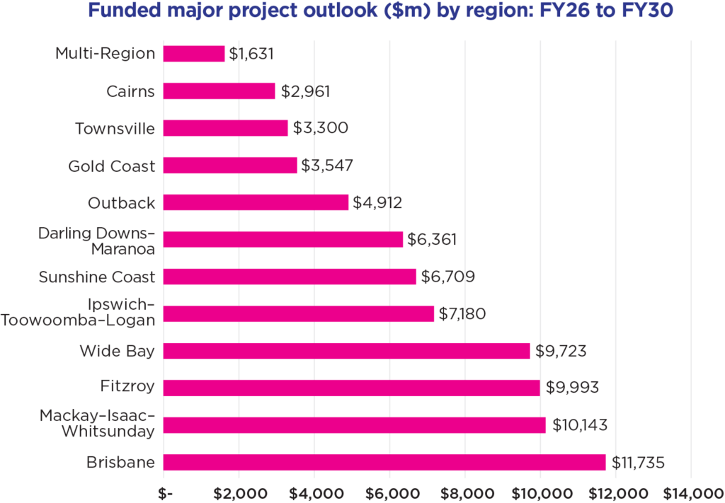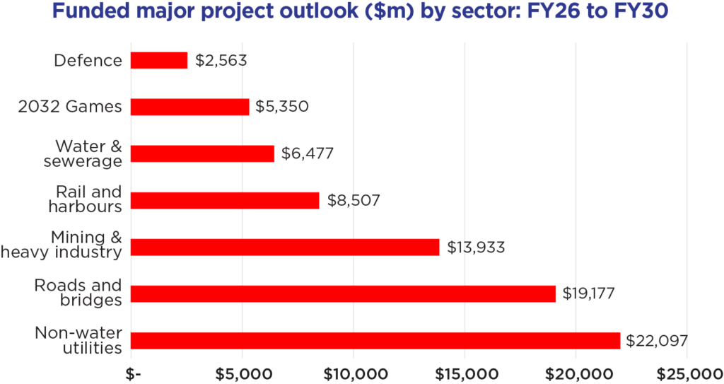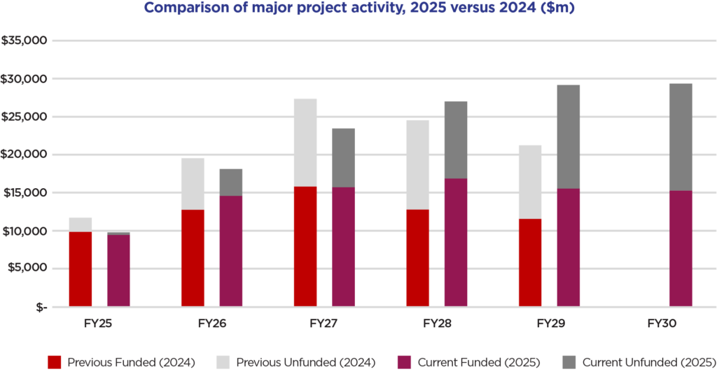 The major projects pipeline (funded and unfunded projects) is now valued at $127.5b ($120b excluding the Games infrastructure). This is up from $103.9b in 2024 and $92b in 2023.
