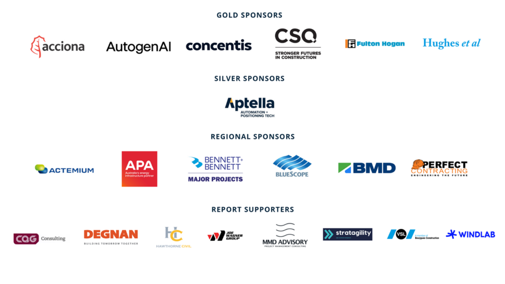 Gold Partners – Acciona, AutogenAI, Concentis, CSQ – Construction Skills Queensland, Fulton Hogan, Hughes et al