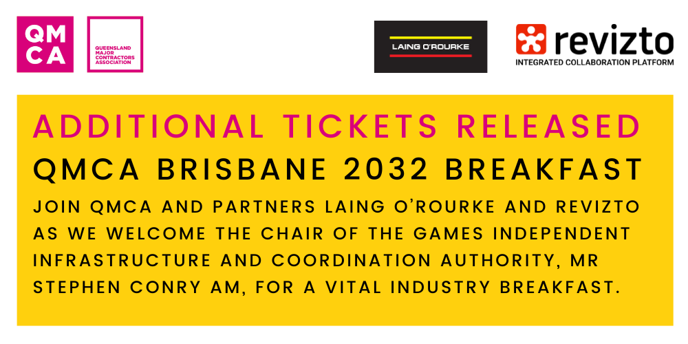 On 25 March, the State Government revealed the venues, infrastructure and facilities associated with the Brisbane 2032 Olympic and Paralympic Games. The QMCA has provided substantial input to this current review. The construction sector will be critical to ensuring that the infrastructure, venues and facilities can be delivered prior to 2032. But what is the detail? How will this be delivered, when and how? The Chair of the Games Independent Infrastructure & Coordination Authority, Stephen Conry AM, will be joining the QMCA for a breakfast on 10 April to discuss these issues.