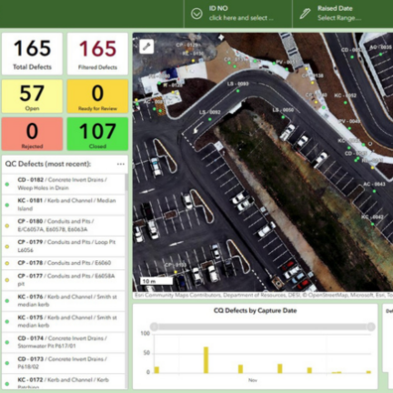 Centralised data visualisations provided teams with reliable 2D data views for effective planning, integrating design drawings, utility data, existing services and aerial imagery into a unified, cloud-based system. The digital QA defect management system used ArcGIS Online to replace paper-based methods by capturing location-based defect data on mobile devices and automatically syncing to the cloud for instant office access.